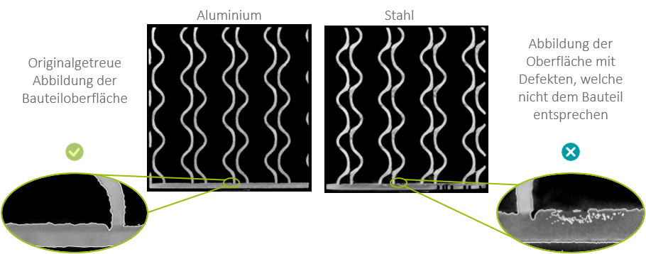 die Bestimmung der Bauteiloberfläche erschwert. Aufgrund