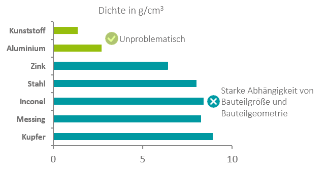 Material des Objekts. Mit zunehmender Materialdichte wird
