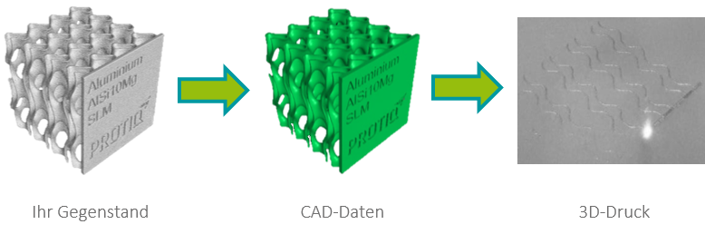 Sie haben einen Gegenstand, den Sie im 3D-Druck abbilden möchten, aber Ihnen liegt kein 3D-Modell vor? Wir erstellen für Sie die passenden Daten im CT-Scan. Vor diesem Hintergrund gilt jedoch zu berücksichtigen, dass der Gegenstand aus einem homogenen Material bestehen muss. Ist diese Bedingung nicht erfüllt, kann bei der Datenauswertung keine eindeutige Differenzierung zwischen den unterschiedlichen Materialien getroffen werden. In diesem Fall ist die Erstellung der CAD-Daten leider nicht möglich.
