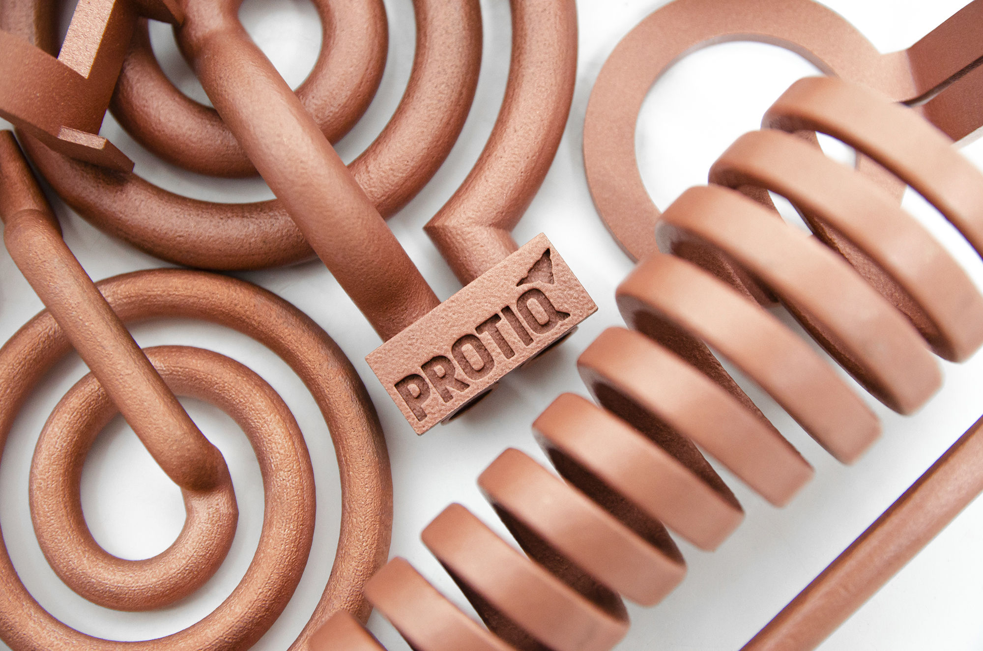 Kupfer verfügt über eine äußerst hohe elektrische und thermische Leitfähigkeit. Durch den 3D-Druck lassen sich komplexe Induktorgeometrien fugenlos und ohne Lötstellen herstellen, was die Effizienz und Lebensdauer deutlich erhöht. PROTIQ nutzt ein speziell entwickeltes Verfahren, um Reinkupfer mit bis zu 99 % Kupferanteil prozesssicher additiv zu fertigen.