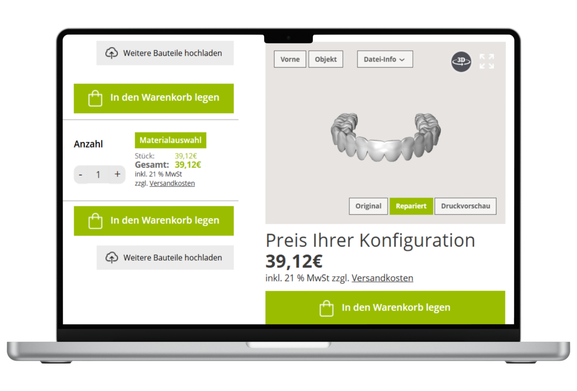 Caricate i dati 3D delle vostre mascherine dentali direttamente sulla nostra homepage.