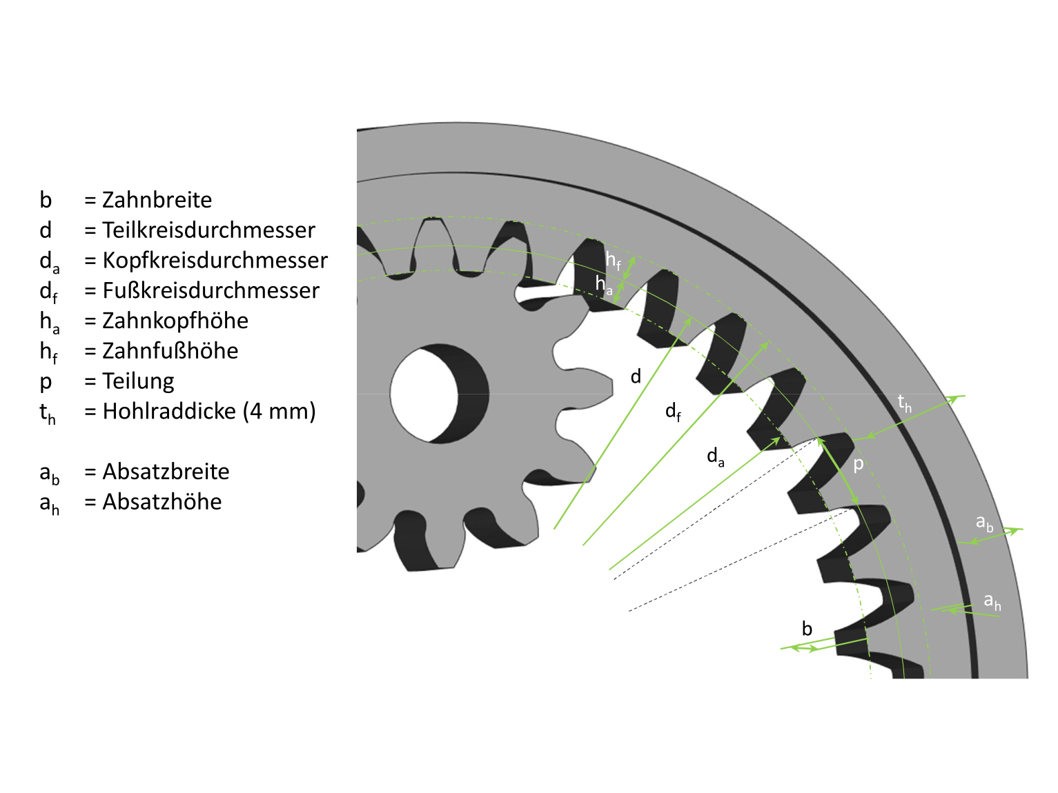 - Technische Skizze des Zahnrads anzeigen