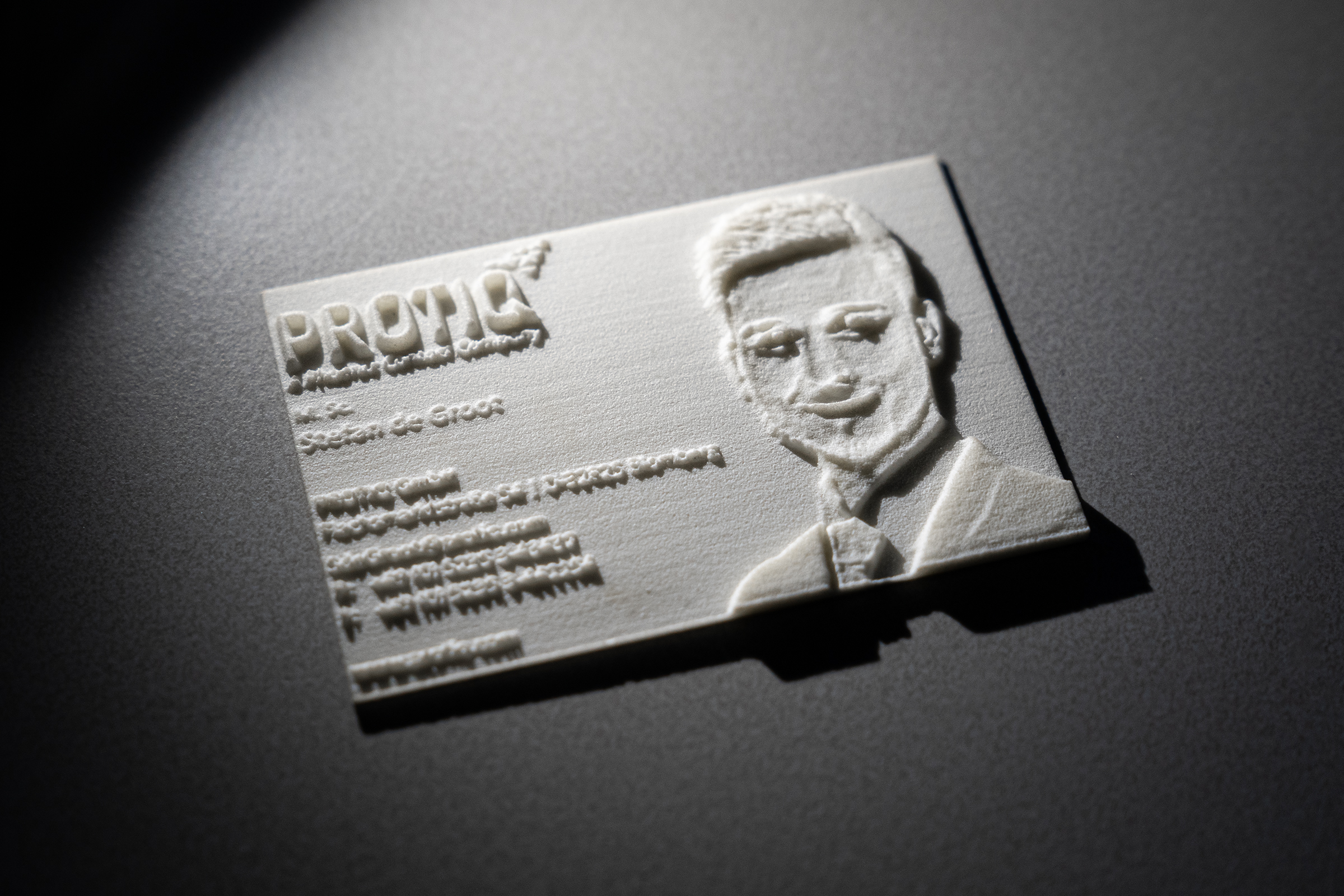 A lithophane is a three-dimensional relief representation of an image that becomes visible when backlit. The varying thickness of the material creates light and dark areas that create a special visual effect when light falls on them. In this way, images can be creatively displayed in relief.