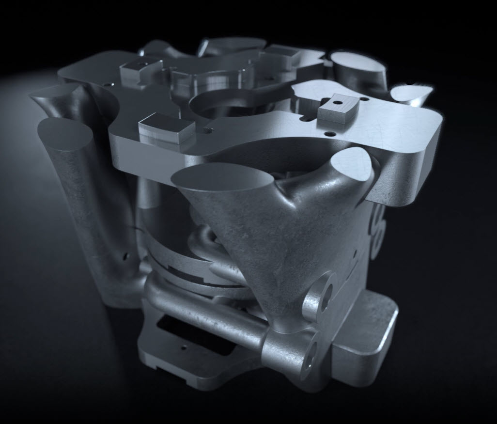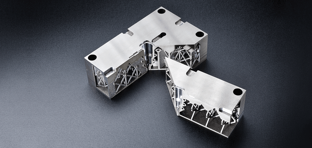 We use 3D printing once the topology has been optimized for structurally efficient lightweight design. The advantages are the reduction of cycle time and costs with weight reduced by up to 75%. Integrated conformal tempering can reduce cycle times and so reduce production costs.