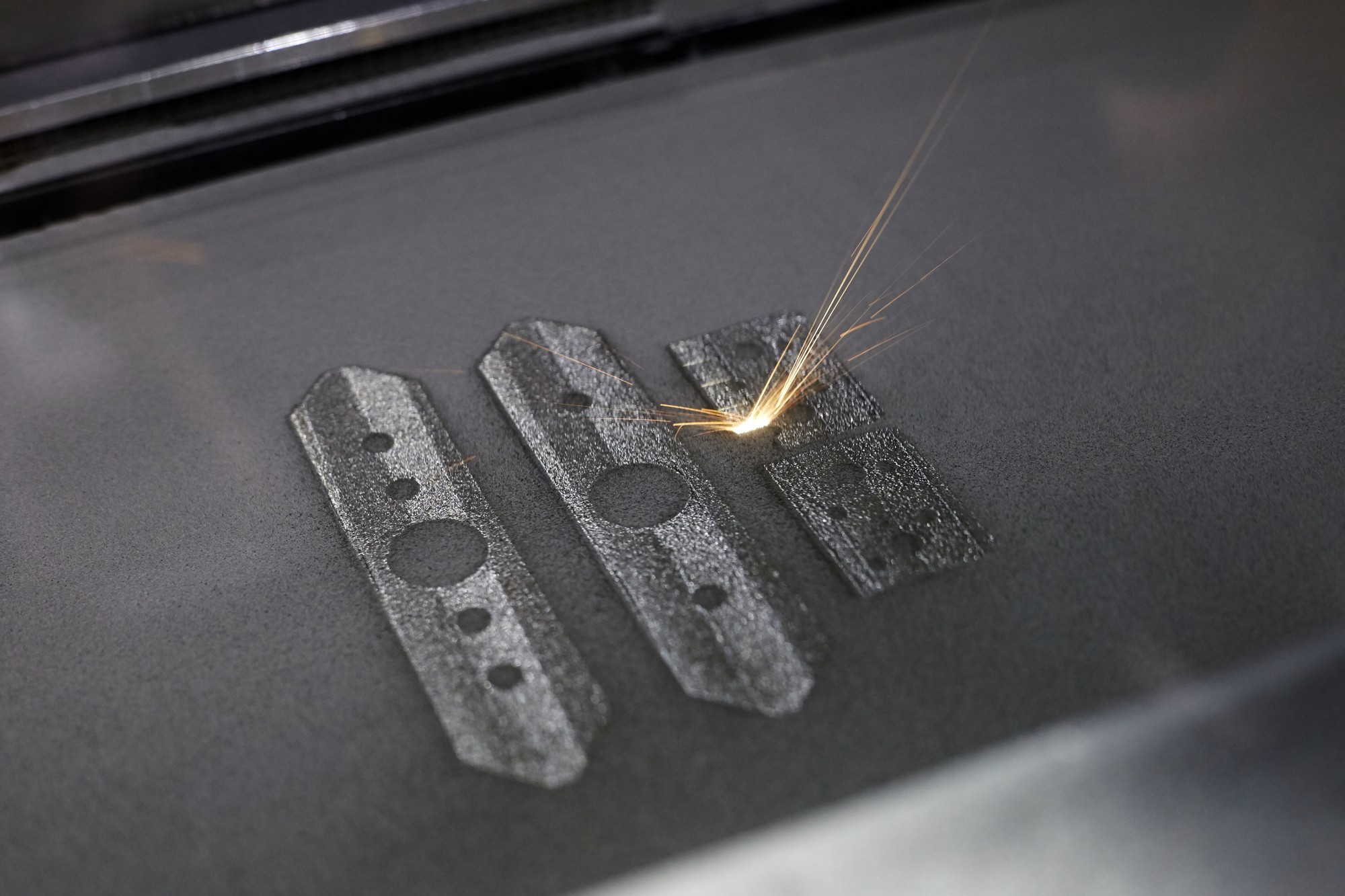Selective Laser Melting is a layer-building 3D printing process in which metal powder is locally fused by the energy of a laser. The components are connected to a support structure which is firmly welded to the base plate. This ensures heat dissipation and fixation during production. The support structures are removed manually after 3D printing.