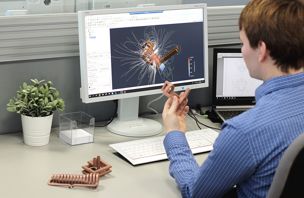 Induction heating is widely used in the metalworking industry. Automotive and industrial suppliers use this effective heating process to harden components, among other things. For efficient use, the induction coils have to be specially designed and produced for each area of application in a time-consuming process. It often takes weeks or even months from receipt of the order to completion of an inductor.