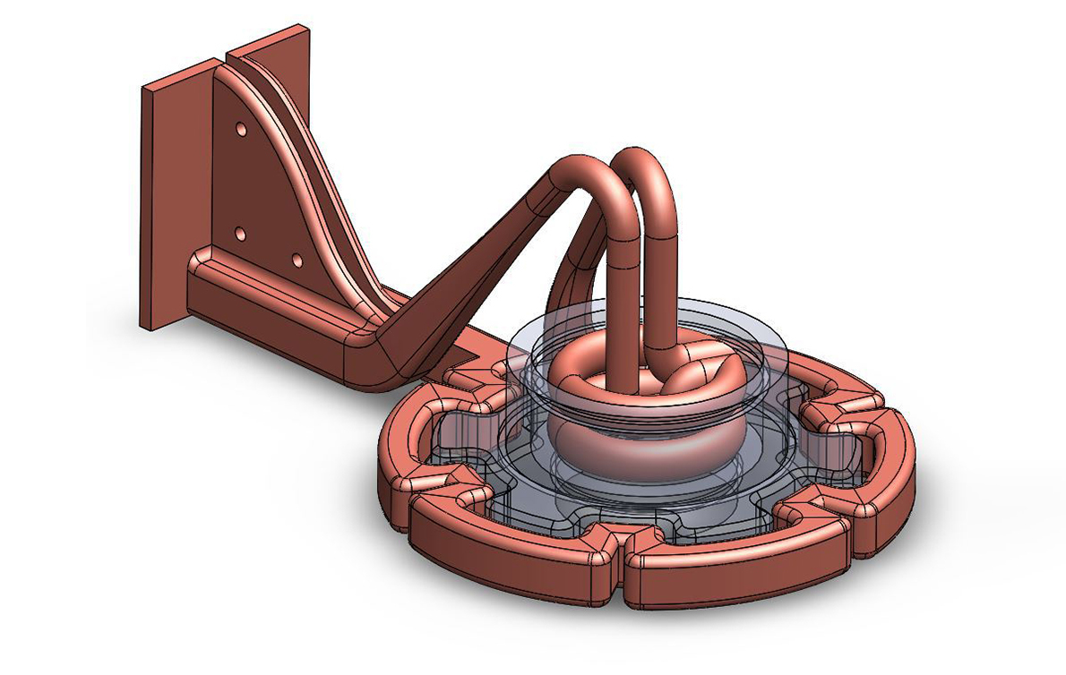 In inductive heating, different part geometries require precisely fitting copper inductors that reliably and repeatably generate the desired heating zones. Traditionally, these coils are manufactured with significant manual effort – a time‑consuming process that limits design flexibility.