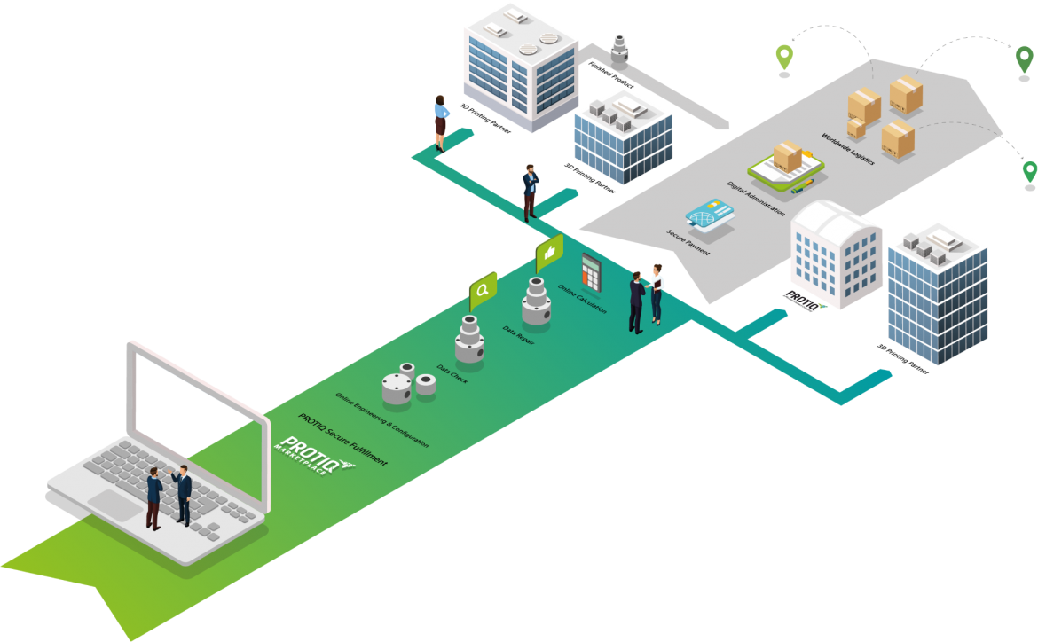 Utilise all the advantages of e-commerce without having to worry about risks and disadvantages. We provide you with our infrastructure, which has been developed on the basis of many years of experience with industrial customers. In addition to administrative tasks, we also offer our partners marketing measures and support with technical and platform issues. Our marketplace is continuously being expanded with new functions, both on the basis of customer requirements and the wishes and feedback of our merchants. The PROTIQ Marketplace is therefore an ideal way to showcase your manufacturing expertise and open up new business opportunities.