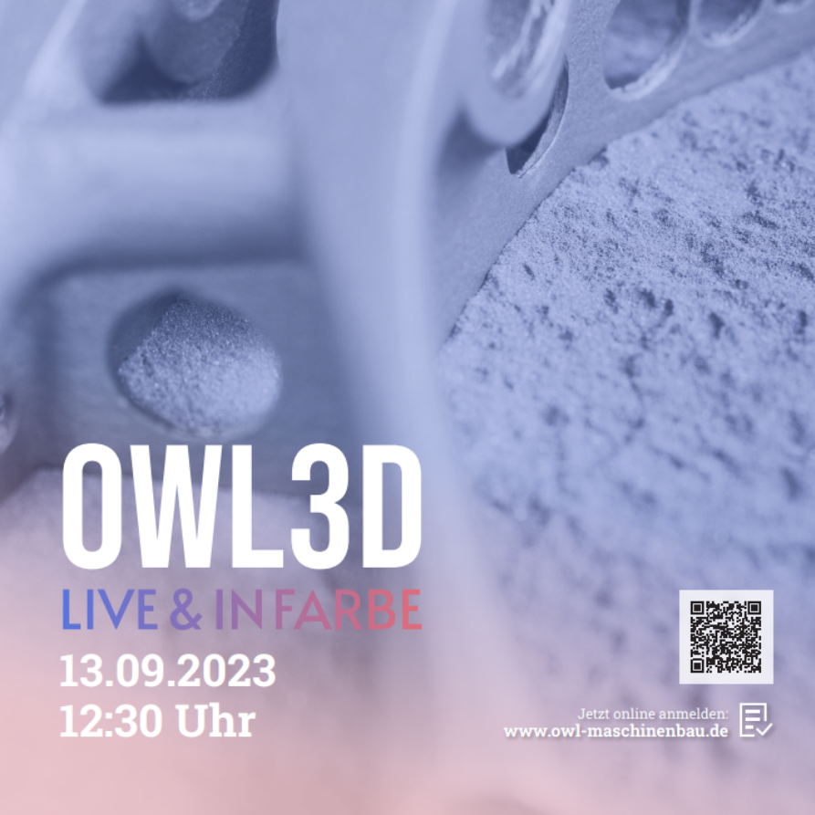 Participants can expect an exciting programme with talks presented by representatives from Böllhoff, Hella, Benteler, Porsche, PROTIQ, UG-Tools and other companies. The OWL3D initiative, in cooperation with the IHK, will provide information about training and further education opportunities. You will also have the chance to find out about industrial applications of additive manufacturing methods. The day will be rounded off by a laboratory tour, where you will gain a comprehensive insight into the practical application of 3D printing.