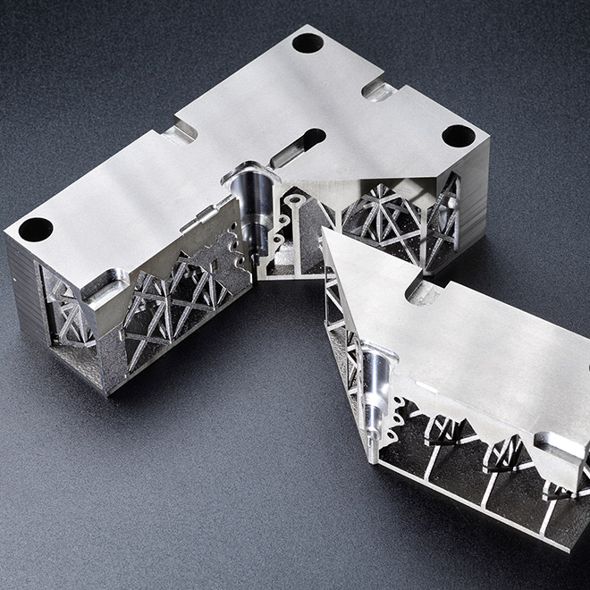 In 3D printing, objects are produced layer by layer from a shapeless source material (powder or liquid). This allows the production of highly complex shapes and even the integration of cavities and undercuts in a single production step. Thanks to the computer-aided development of an optimal basic shape, you can profitably leverage the great freedom of design offered by additive manufacturing to improve tools and tool inserts.